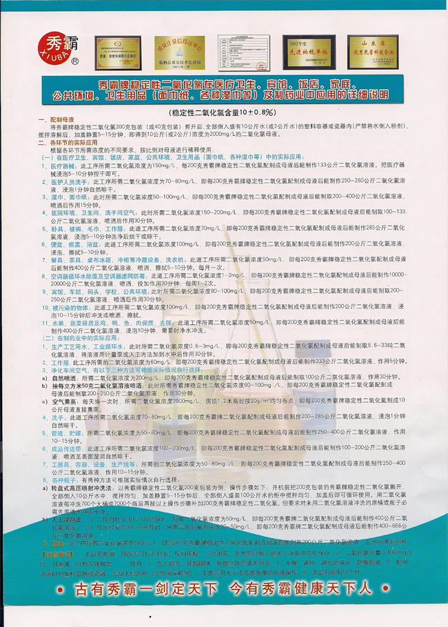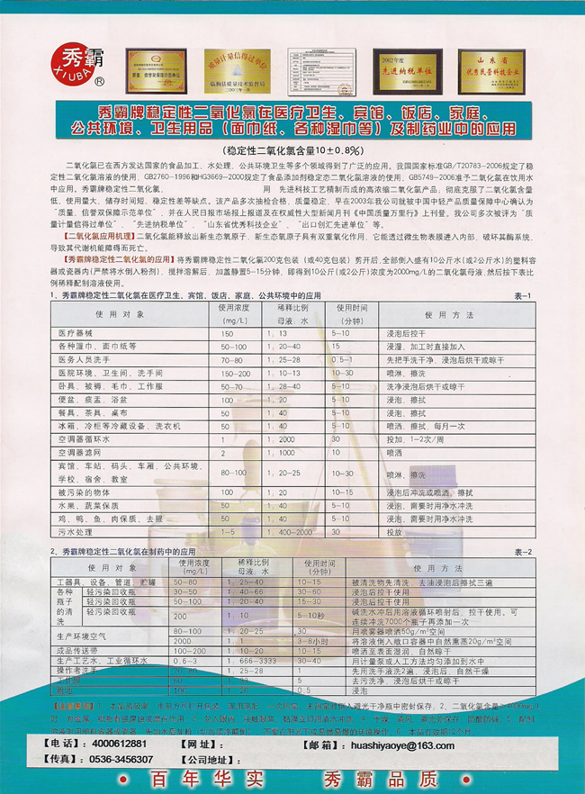 二氧化氯在医疗卫生、宾馆、公共环境、卫生用品应用