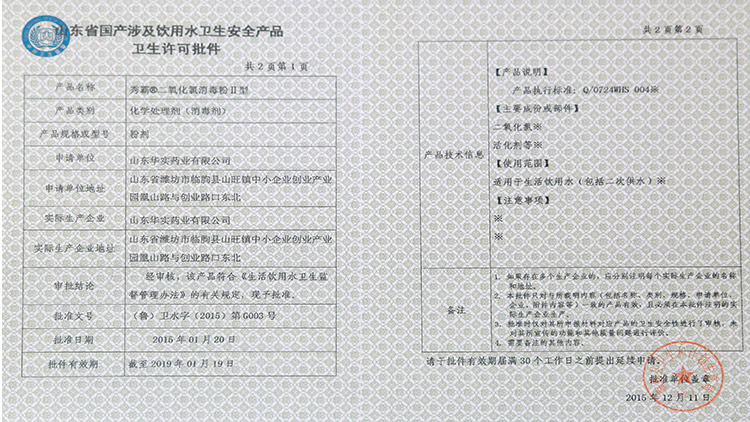秀霸牌二氧化氯消毒粉II型在饮用水处理中的应用